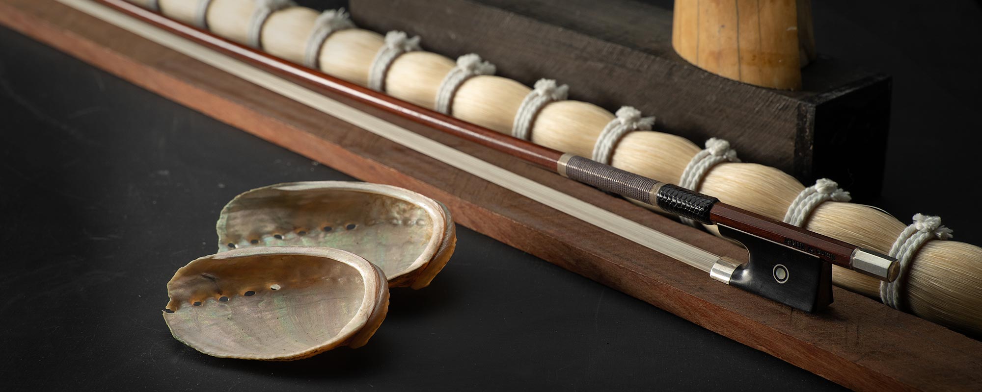The relationship that I have to my materials is fundamental to the work that I do, as important as my relationship to the musician with whom I work. Which is why all materials come from first principles or “materieux nobles” and are of the rawest and highest quality I can obtain. The ormeaux pearl I often use and is traditional to French bow making was sourced directly by visiting the Channel Islands to buy from residents who use it as a food source. I worked very hard to establish direct relationships with Chinese Mongolian suppliers to secure the best quality Live horse hair. Gold and silver alloys I refine and alloy to specific historical standards by drawing upon my many years of experience as a master jeweller. Every component comes as closely as possible from the raw form so that at each step towards completion of your bow the materials and process are under my direct control leading to the highest quality bows that I can produce by this very intentional hand crafted journey.